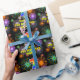 This cheerful and exciting birthday themed wrapping paper design features a large number “7” with a colourful rainbow spectrum gradient inspired pattern, along with the message “Happy 7th Birthday,”, and an editable name. The background features a multicolored pattern inspired by the appearance of bursting celebratory fireworks. Joyful birthday themed wrapping paper like this might be used when giving a gift or present in celebration of somebody’s seventh birthday. [~Z0000587]