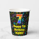 This exciting and colourful music themed birthday paper cup design features a large number “7” with a rainbow spectrum gradient inspired pattern, along with the message “Happy 7th Birthday,”, and an editable name. The background features an exciting and colourful pattern of various music notes and symbols of different sizes and colours. Vibrant, colourful paper cups like this might be fun to have at a birthday celebration/party being held in celebration of somebody’s 7th birthday. [~Z0000541]