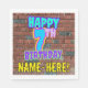 This fun birthday-themed paper napkin design features the message “HAPPY 7TH BIRTHDAY,” having a colourful, vibrant, graffiti-inspired appearance, plus a personalised recipient name. The background features a pattern inspired by the look of a brick wall. Birthday themed paper napkins like this might be a fun way to celebrate somebody’s 7th birthday. [~Z0000534]