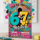 Make your child’s celebration unforgettable with this 6 and 7 meme birthday invitation template, featuring a funny hoodie character holding bold numbers in neon blue and green, a perfect editable invite for gamer boys.