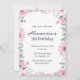 7th birthday invitations Floral Frame Pink Green elegant watercolor