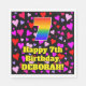 This fun and cheerful birthday paper napkin design features a large number “7” with a rainbow spectrum gradient inspired pattern, along with the message “Happy 7th Birthday,”, and an editable name. The background features a pattern of pink, red, and purple heart shapes. Joyful, friendly paper napkins like this might be fun to use at a birthday celebration being held to honour somebody’s 7th birthday. [~Z0000550]