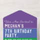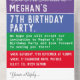 Bright colours and bold design in Stripes. 7th Birthday party invitation all-in-one card. 7th birthday party invitations.