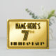 The front of this luxurious and 1920s/1930s style inspired seventh birthday party/celebration foil invitation card design features a personalised name, an intricate art deco style inspired number “7th”, the message “BIRTHDAY PARTY”, and a border pattern consisting of lines. The back features personalised details about the event, such as the date, time, venue, and any other information that may be useful. Stylish, elegant, editable invitations like these might be used to invite guests/attendees to a birthday party/gathering being held to celebrate somebody’s 7th birthday. [~Z0000594]