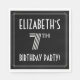 This 1920s-1930s style inspired seventh birthday celebration/party paper napkin design features an editable name, a fancy art deco style inspired number “7th”, the message “BIRTHDAY PARTY!”, and a multi-line border. It features a black-coloured background by default, but it can be customised to a different colour, if desired. Luxurious birthday themed paper napkins like these might be used at a birthday party for somebody who is celebrating their seventh birthday. [~Z0000616]