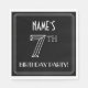 This luxurious 1920s-1930s era inspired art deco look birthday paper napkin design has a personalised name, plus the message “7TH BIRTHDAY PARTY!”. The number “7TH” has a fancy geometric lined appearance. Elegant birthday themed paper napkins like these might be used at a party in celebration of somebody’s seventh birthday, or some other 7th event. [~Z0000659]
