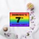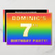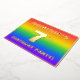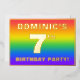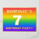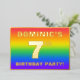 The front of this vibrant seventh birthday party foil invitation card design features a customisable name, a large number “7th”, the message “BIRTHDAY PARTY!”, and a border. The background of the front has a fun, multicolored, rainbow spectrum inspired gradient pattern. The back features personalised details about the event, such as the date, time, location/venue, and any other important information. Personalised invitations like these might be a fun way to invite attendees to a birthday party being held in celebration of somebody’s 7th birthday. [~Z0000599]