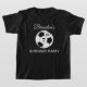7th Birthday party for a soccer fan, sports, kids, boys, for him. Black and white, modern, elegant Birthday party t-shirt. Please personalize it with your details.