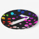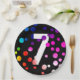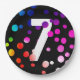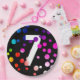 Neon rainbow dot pattern on black background for 7th birthday party.