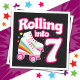 This skate party design is perfect for a roller skating party or birthday theme for a 7 year old girl. If the birthday girl loves to roller skate she will LOVE this skate party design! Features retro style 'Rolling into 7' birthday quote with cool roller skate graphic with rainbows & stars that's fun & unique. Fun roller skate party design for a girl's 7th birthday!