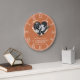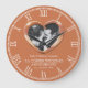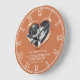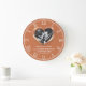 Copper heart wedding anniversary clock. Personalise this unique clock with your own couples photo, year of marriage, and names or relationship to you. The example reads Emily & Matthew Vermeulen 8th Bronze Wedding Anniversary and marriage and current date. Other matching seven years married wedding anniversary heart gifts and cards are available. Precious metal copper heart effect graphic art and design by Sarah Trett for www.mylittleeden.com (Placeholder photo image thanks to Crystal Shaw at Unsplashed).