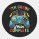 7th Grade Level Complete Graduation Gaming Gamer Classic Round Sticker