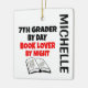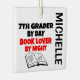 This is a unique ornament featuring the quote "7th Grader by Day Book Lover by Night", perfect for any seventh grader that loves to read.