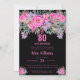 A pretty, pink purple elegant 80th birthday party invitation you can personalise and send out for your eightieth birthday celebration. In the centre of the design is a pink "80 and fabulous" with a scripted name, embellished by a feminine floral design on a modern black background. The beautiful flowers are perfectly contrasted by a pink background on the back of the card .