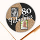 80 and Fabulous Gold Glitter 2 Photo 80th Birthday Stickers. Add your photos - you can use an old and new photo. Add your name and age.