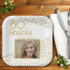 80 and Fabulous Gold Glitter Photo 80th Birthday Party Paper Plates. Modern design with trendy typography and faux gold glitter spots. The design has a custom photo and name. Make personalised 80th birthday party paper plates for her.