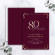 This beautiful invitation features hand lettered calligraphy artfully presenting 'eighty' in luxurious hand lettering against a burgundy background, adorned with delicate swirls in the corners top and bottom in real gold foil, along with the name and the number 80. This image will have all your guests excitedly anticipating your fabulous eightieth festivities!