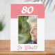 80 so What Positive Photo Birthday 80th Birthday Card. It comes with a funny and positive quote 80 So What and is perfect for a person with a sense of humour. The card is in pink and white colours. Personalise with your photo and text inside. You can also change the age.