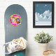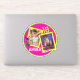 Neon Pink-Green and Yellow photo decal with retro cellular phone and skateboarder shoes and two overlapping photo frames for the guest of honour photos. Add your name and age or chose your own custom text.
