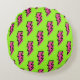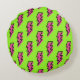 80's/90's Neon Green & Pink Lightning Bolt Pattern Round Cushion
