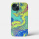 Phone case with 80's style colour palette acrylic pour design.