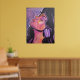 Embrace your feminine power and let it wash over your bodaciously big hair. This mixed media pop art collage painting features a woman with 80s style black hair and purple streaks looking up into the sky - all while wearing a macaron earring and colourful makeup. Originally painted on newsprint with acrylics and marker.