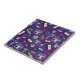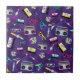 A pretty 80's design that is beautiful, these ceramic tile features a violet background with vintage items such as cassette tapes, radios, sunshades etc. Add to cart today!