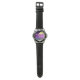 My husband loves the watch, he likes the dial, the graphics, the band, and it keeps perfect time.