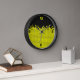 Custom wall clock for a computer geek or video gamer with yellow pixels grid. The black background can be changed to any other colour.