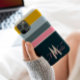 Inject some nostalgic energy into your tech with this 80s vintage inspired striped phone case. This design perfectly captures the retro 70s vibes with a curated color palette featuring deep navy blue, warm mustard yellow, earthy slate, and a pop of soft blush pink.