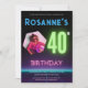 80s Retro Night Custom Photo Neon 40th Birthday Invitation
