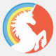 Reminiscent of the stickers I had in my collection as a child during the 80's. Colourful rainbow and and white unicorn on orange background..