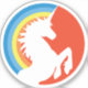 Reminiscent of the stickers I had in my collection as a child during the 80's. Colourful rainbow and and white unicorn.