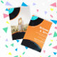 80s Retro Vinyl Record Photo wedding invitation template, bold vintage orange wedding invite.