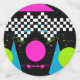 This neon, geometric splatterpaint design takes you right back to the 80s.
