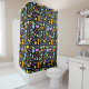 80s Style Shape Rpt Pattern Colour on Black Shower Curtain