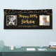 Celebrate any age birthday (shown for an 80th) with this editable black and gold banner sign featuring 2 photos (perhaps "then and now" pictures, your custom text shown in an editable hand-lettered calligraphy typography and gold and white string lights. EDITABLE COLOR: The black background colour and text fonts and colour can be changed to coordinate with your party colours by in the EDIT section. The sample is shown in the 2.5x6' indoor option--other sizes and "outdoor" are available on the ordering page. ASSISTANCE: For help with design modification or personalisation, colour change, resizing, transferring the design to another product or if you would like coordinating items, contact the designer BEFORE ORDERING via the Zazzle Chat MESSAGE tab below or email makeitaboutyoustore@gmail.com.