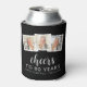 80th Birthday 3-Photo Black White Script Cheers Can Cooler