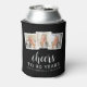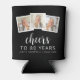 This custom 80th birthday can cooler features a collage of three custom square photos above the phrase "Cheers to 90 years" in elegant white calligraphy script and sans serif font on a black background. Add the guest of honour's name and birthday below. A great way to celebrate someone who's turning eighty!