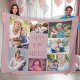 80th Birthday 7 Photo Collage Pink Fleece Blanket