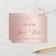 A feminine and glamourous Save the Date card for a 80th birthday party 80 years old. A feminine pink, rose gold faux metallic looking background decorated with faux rose gold diamond sprinkle. Templates for a date and your text. Dark rose gold coloured letters. The text: Save the Date is written with a large trendy hand lettered style script.