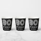 This vintage look and Roaring Twenties inspired birthday-themed paper cup design features a large art deco inspired style number “80”, plus the birthday greeting message “Happy 80th Birthday,” and a personalised name. The background is coloured black. Vintage look birthday themed paper cups like this might be used at a party in celebration of somebody’s eightieth birthday. [~Z0000542]