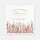 Perfect table decor for an August birthday party. Pink gladiolus is the birth flower for that month. It forms a pretty watercolor bottom border on this floral personalised napkin. The birthday guest of honour's name, age and birthdate are placed above it using elegant calligraphy and typography. All text is editable.