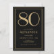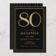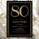 80th Birthday Black and Gold Modern Minimal Adult Invitation