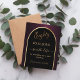 A Save the Date card for a 80th birthday party. A black and burgundy background, decorated with a faux gold arch. Personalise and add a date and your name. The text: Eighty and Save the Date is written with a large trendy hand lettered style script.