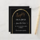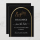 A Save the Date card for a 80th birthday party. A black background, decorated with a faux gold arch. Personalise and add a date and your name. The text: Eighty and Save the Date is written with a large trendy hand lettered style script.