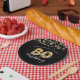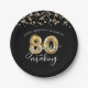 80th Birthday Black Gold Balloon Script Streamers Paper Plate