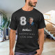 For a black, dark coloured t-shirt. White text. Personalise and add a photo, name, age, date. Faux silver looking 8-number.
