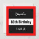 80th Birthday Black with Red Frame Custom A01E. It's BIRTHDAY time....Let's CELEBRATE! This classic and elegant geometric design with places to personalise with a name, and birthday year, and event date is a fun way to start the party!