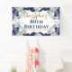 A gorgeous navy and silver balloon 80th birthday party banner. This fabulous design is the perfect way to congratulate someone on their eightieth birthday (or any age!). Personalise with our own custom name. Blue and gold coloured typography and gorgeous navy blue and silver balloons.